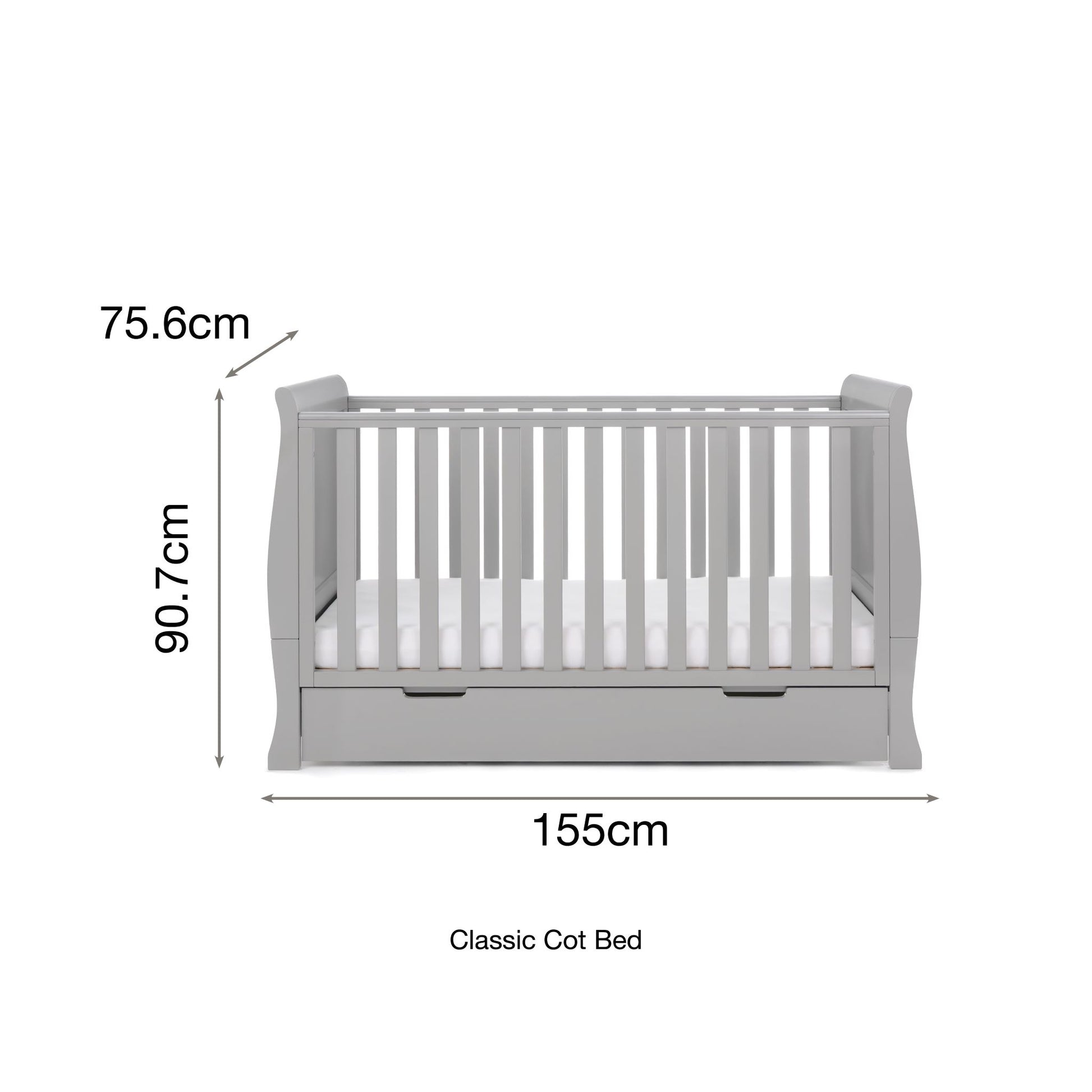 - OBABY Stamford Classic Sleigh Cot Bed - available in Warm Grey and White