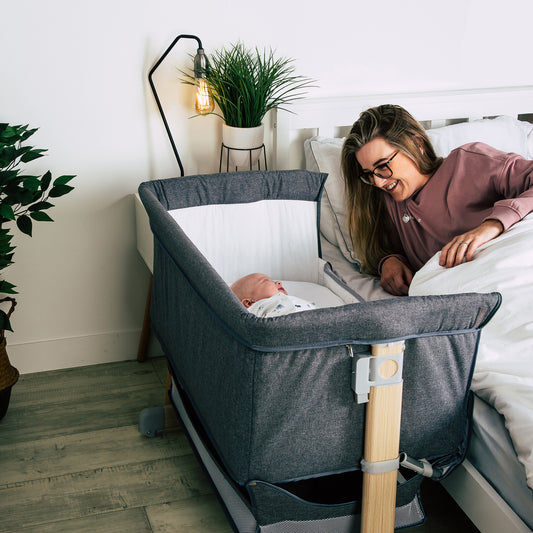OBABY Cloud Bedside Crib – available in Oatmeal & Grey Mattress included