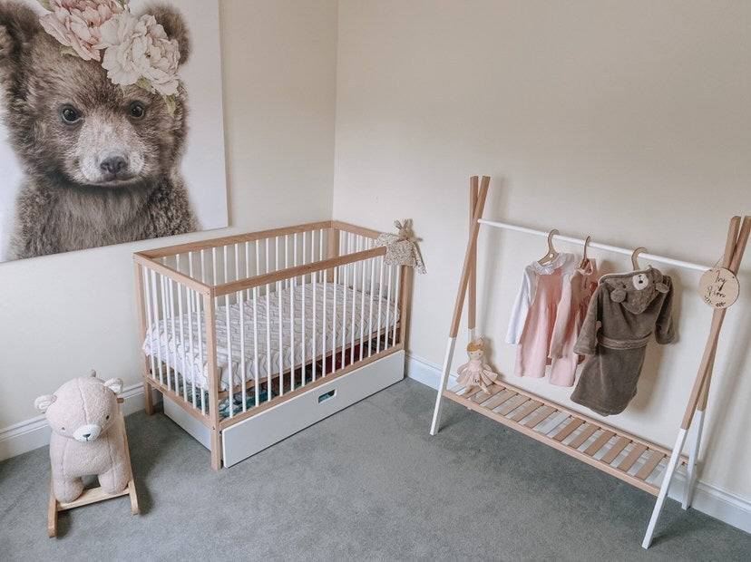 This drawer fits our Cot Beds perfectly to help you keep your nursery organised.